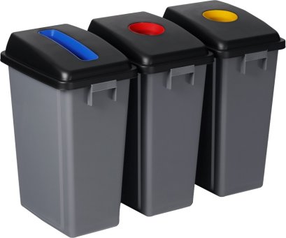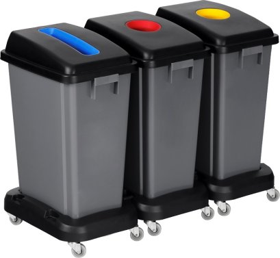 เชื่อมต่อถังขยะเข้าด้วยกันได้โดยไม่ต้องใช้เครื่องมือ ติดตั้งล้อเคลื่อนย้ายง่าย แยกขยะได้ 3 ประเภท พลาสติกหนา ไม่เหม็น ล้างทำความสะอาดง่าย