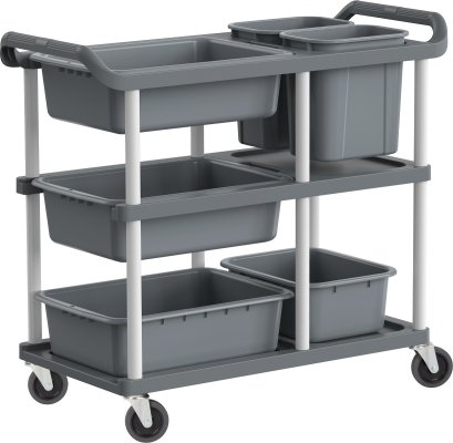 ถาดถอดล้างทำความสะอาดได้ง่าย มือจับออกแบบให้จับสบาย ไม่เมื่อยมือ เข็นในที่แคบได้ง่าย