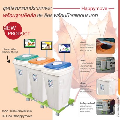 เปิดฝาได้ง่าย ติดตั้งฐานติดล้อเคลื่อนย้ายทำความสะเอาดง่าย ถังจุ 95 ลิตร ขนาด ก505xย420xส760 mm.