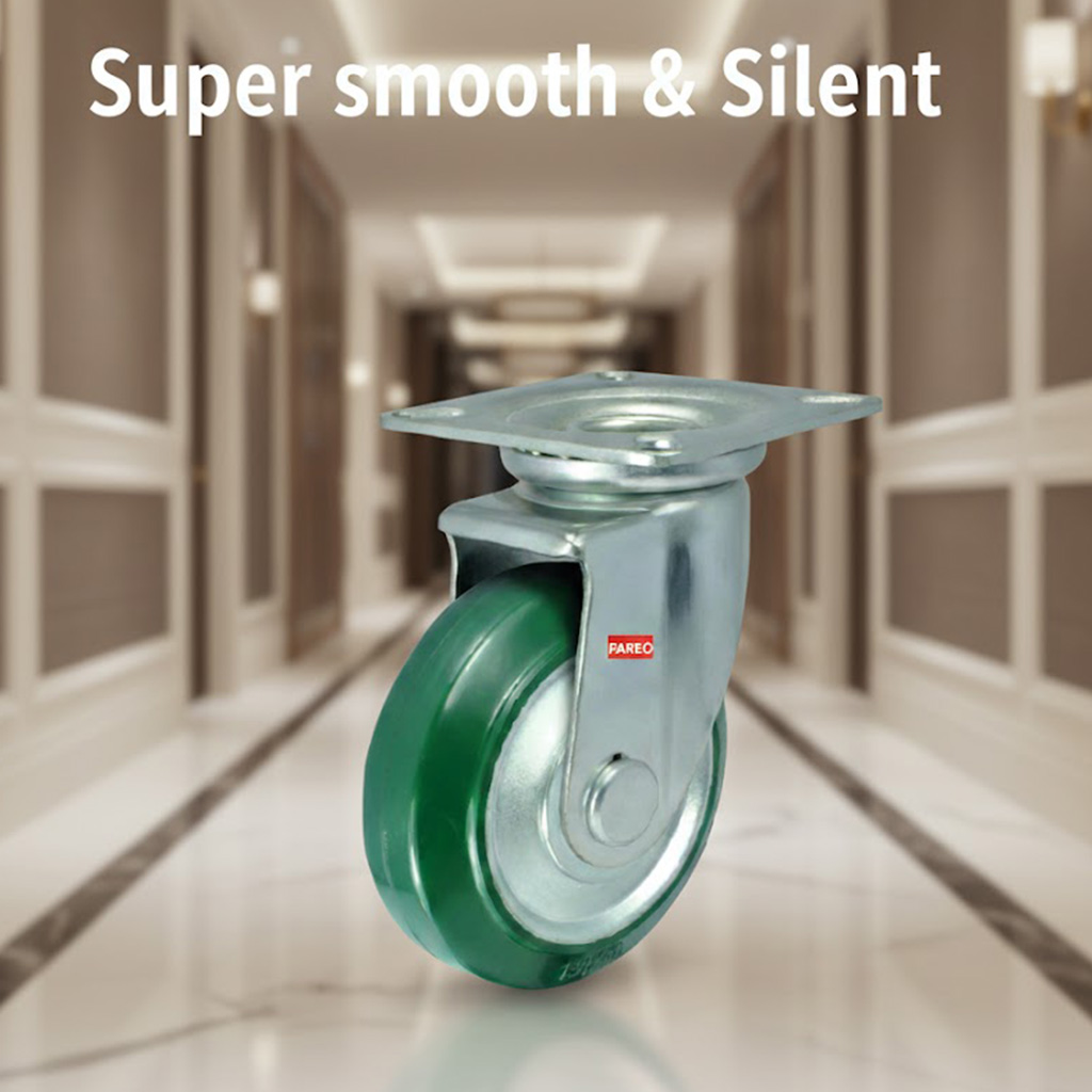 แป้นหมุน ลูกล้อลดแรงสะเทือน เข็นเงียบ PAREO Green Rubber JIS Standard เข็นนุ่ม เสียงเบา ลดความเสียหายสินค้า ทนทานสูงกว่ายางทั่วไป 2 เท่า มีแบบเบรก/หมุน/ตาย****ติดต่อพนักงานขายเพื่อขอราคา สั่งซื้อแอด ไลน์ @happymove ****