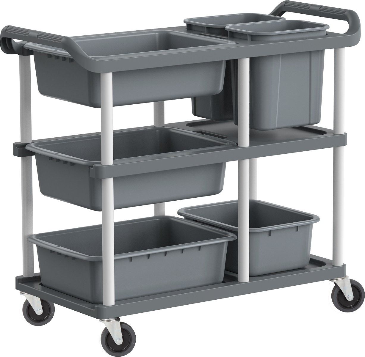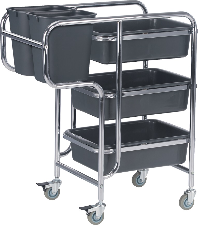 รถเข็นเก็บจาน มีทั้งแบบโครงหล็กชุบโครมเมี่ยม และรถเข็นเก็บจานพลาสติกไฟเบอร์เทค มีให้เลือก 2ชั้น 3ชั้น