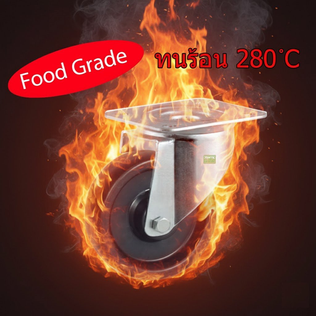 80,100มม.แป้นหมุน ลูกล้อทนความร้อน TENTE เยอรมัน ทนได้ถึง 280 องศา มาตรฐาน Food Grade มีแบบแป้นหมุน แป้นตาย และมีเบรก สำหรับอุตสาหกรรมอาหารและเตาอบ.