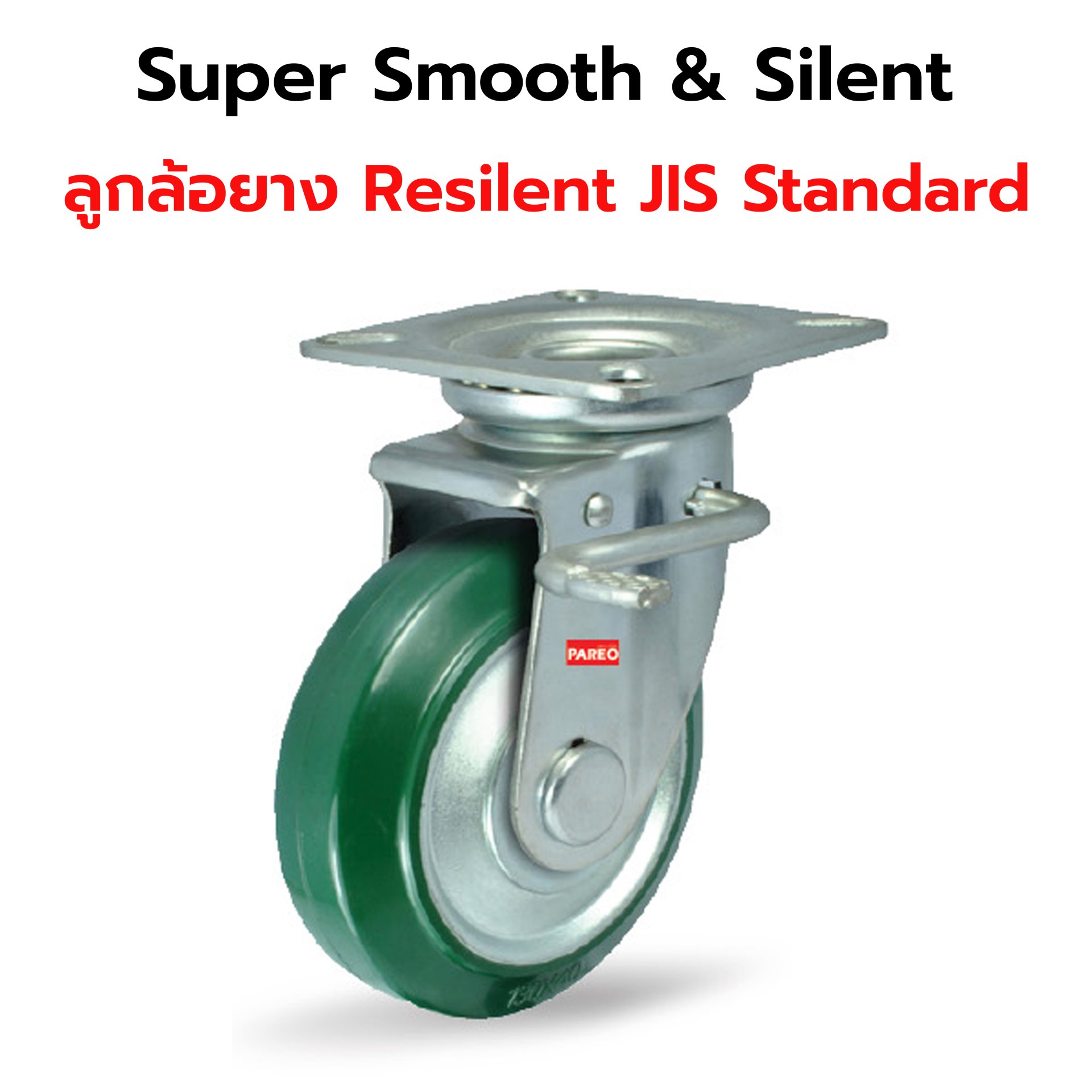 แป้นเบรกลูกล้อลดแรงสะเทือน PAREO Green Rubber JIS Standard เข็นนุ่ม เสียงเบา ลดความเสียหายสินค้า ทนทานสูงกว่ายางทั่วไป 2 เท่า มีแบบเบรก/หมุน/ตาย****ติดต่อพนักงานขายเพื่อขอราคา สั่งซื้อแอด ไลน์ @happymove ****