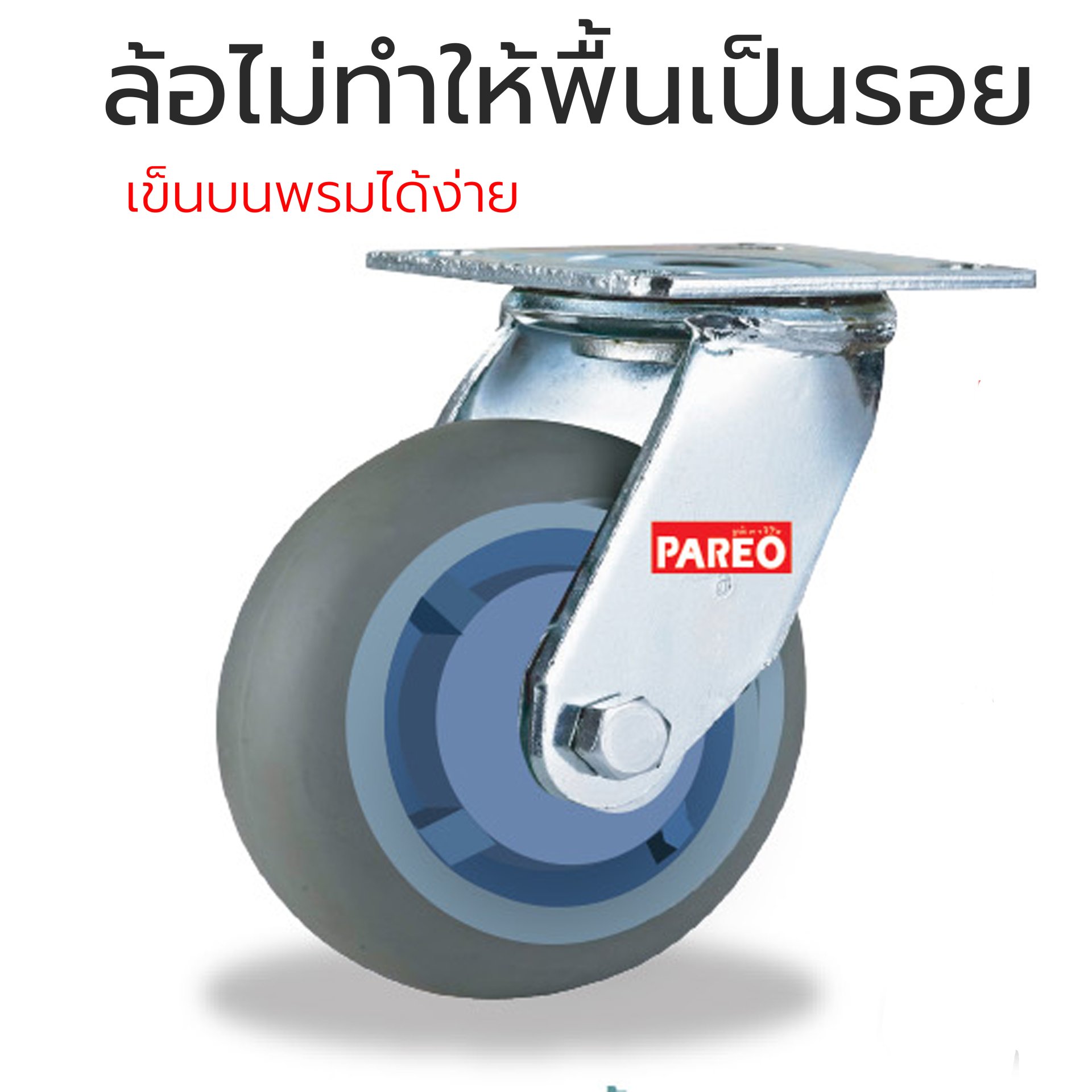 ลูกล้อยางเทาไม่ทำให้พื้นเป็นรอย แป้นหมุน รับน้ำหนัก200-600กก. มีลูกปืนคู่ PAREO MAX Series